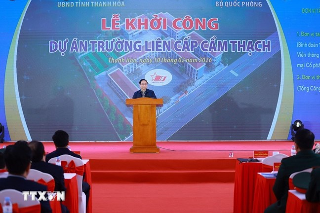 Nhân dịp năm mới 2026 và Tết cổ truyền của dân tộc - Xuân Bính Ngọ 2026, sáng 10/2, Thủ tướng Chính phủ Phạm Minh Chính dự Lễ khởi công dự án Trường liên cấp Cẩm Thạch và thăm, tặng quà Tết cho hộ nghèo, hộ có hoàn cảnh khó khăn, công nhân lao động ở tỉnh Thanh Hóa.