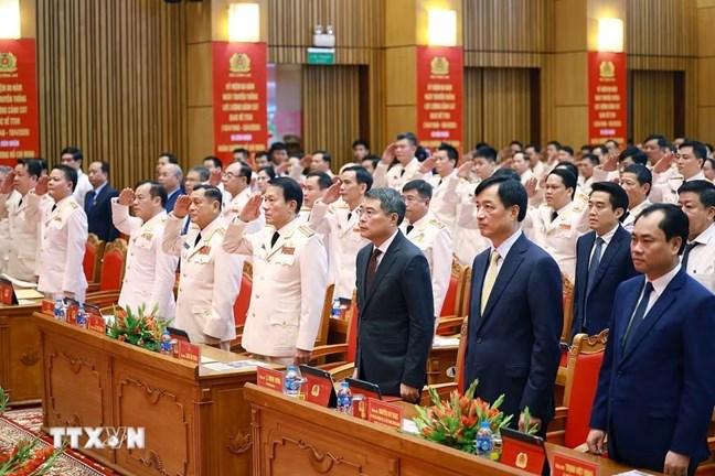 | Thủ tướng Lê Minh Hưng và các đại biểu dự Lễ kỷ niệm 80 năm Ngày truyền thống lực lượng Cảnh sát Quản lý hành chính về trật tự xã hội. Ảnh: Dương Giang/TTXVN |