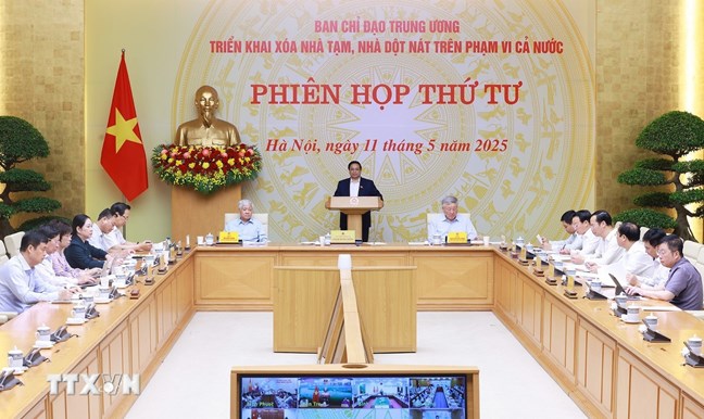 | Thủ tướng Phạm Minh Chính chủ trì Phiên họp lần thứ tư của Ban Chỉ đạo xoá nhà tạm, nhà dột nát. Ảnh: Dương Giang-TTXVN |