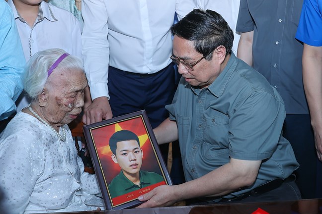 Thủ tướng đã tới thăm, tặng quà Mẹ Đào Thị Vui, sinh năm 1923, hiện ở tại thôn Đại An Khê, xã Hải Lăng, tỉnh Quảng Trị. Mẹ có chồng và một con duy nhất là liệt sĩ (chồng là liệt sĩ Lê Hồi hy sinh năm 1948, con là liệt sĩ Lê Thịnh hy sinh năm 1969).
