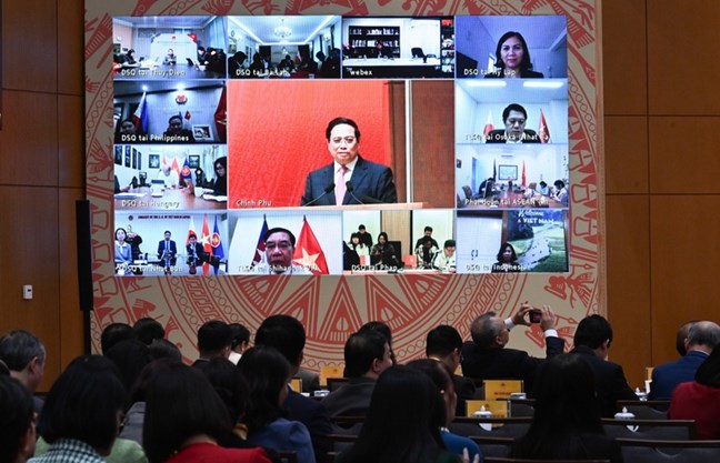 Hội nghị được tổ chức tại Trụ sở Chính phủ, trực tuyến với 98 cơ quan đại diện Việt Nam tại nước ngoài - Ảnh: VGP/Nhật Bắc