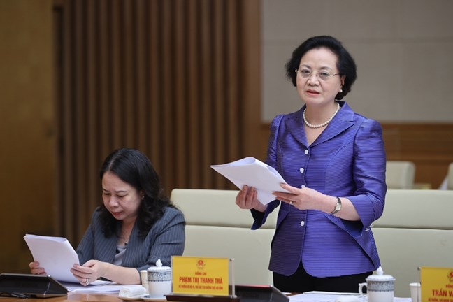 | Phó Trưởng Ban Tổ chức Trung ương, Bộ trưởng Bộ Nội vụ Phạm Thị Thanh Trà, Phó Chủ tịch Thường trực Hội đồng báo cáo tại phiên họp - Ảnh: VGP/Nhật Bắc |