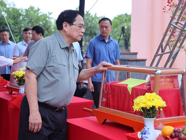 Thủ tướng bày tỏ, đất nước ta chưa bao giờ có được cơ đồ, tiềm lực, vị thế và uy tín quốc tế như ngày nay, đây là nhờ sự cố gắng, nỗ lực của toàn dân tộc, trong đó có sự cống hiến, hy sinh của những thế hệ đi trước, những người đã ngã xuống. Ngày nay, đất nước được hòa bình, non sông đất nước thu về một mối, Thủ tướng mong cấp ủy, chính quyền, Mặt trận Tổ quốc, các đoàn thể chính trị-xã hội các cấp và nhân dân tiếp tục phát huy truyền thống yêu nước, tinh thần anh hùng, bất khuất, vượt qua mọi khó khăn, thách thức, làm hết sức mình vì sự phát triển nhanh, bền vững của đất nước, vững tin bước vào kỷ nguyên mới, phát triển giàu mạnh, văn minh, thịnh vượng, nhân dân ngày càng ấm no, hạnh phúc.