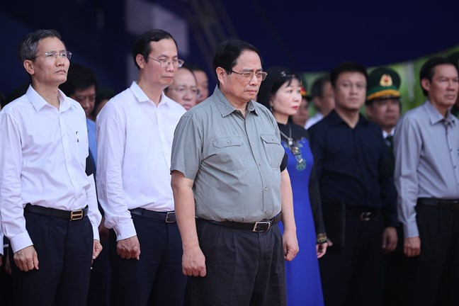 Trong không khí trang nghiêm, xúc động, Thủ tướng Phạm Minh Chính và các đại biểu đã bày tỏ lòng biết ơn sâu sắc đối với những người con ưu tú của Tổ quốc đã anh dũng chiến đấu, hy sinh cho nền hòa bình, độc lập, thống nhất của Tổ quốc, hạnh phúc, ấm no của nhân dân và nghĩa vụ quốc tế cao cả.