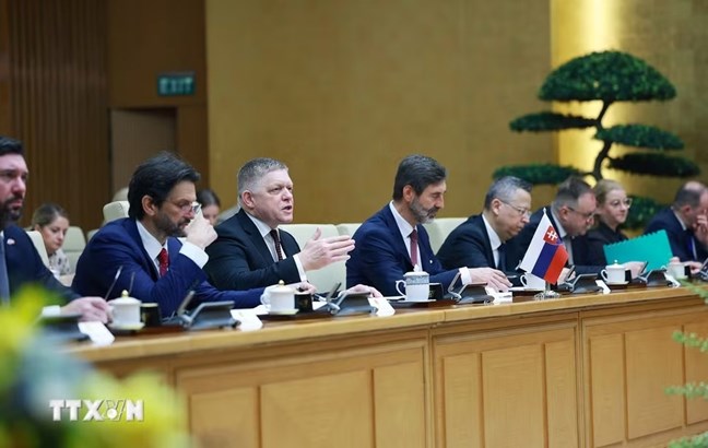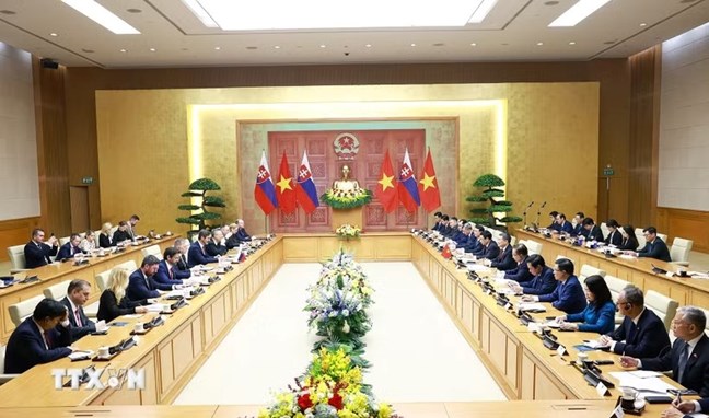| Thủ tướng Lê Minh Hưng hội đàm với Thủ tướng Slovakia Robert Fico. (Ảnh: Dương Giang/TTXVN) |