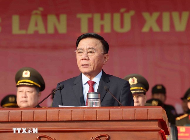 | Thường trực Ban Bí thư Trần Cẩm Tú dự Lễ xuất quân, diễn tập phương án bảo đảm an ninh, trật tự Đại hội đại biểu toàn quốc lần thứ XIV của Đảng. Ảnh: Phương Hoa/TTXVN |