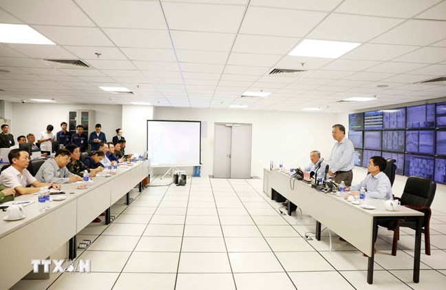 | Tổng Bí thư Tô Lâm đến vùng bị chia cắt do mưa lũ tại thôn Khuông Phò Đông, xã Quảng Điền, Thành phố Huế. Ảnh: Thống Nhất/TTXVN |