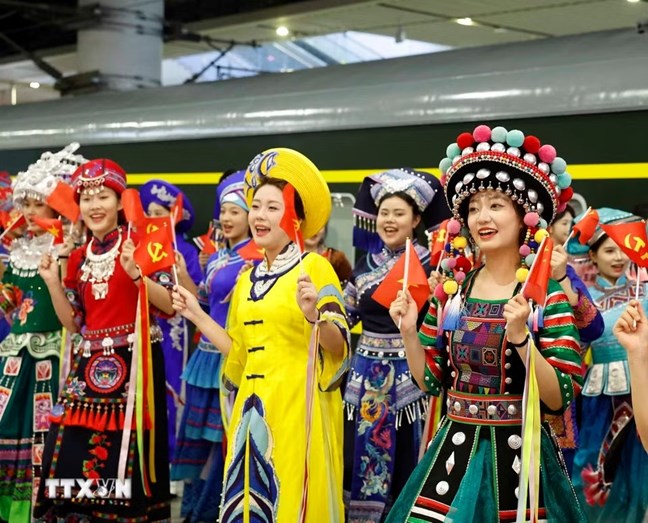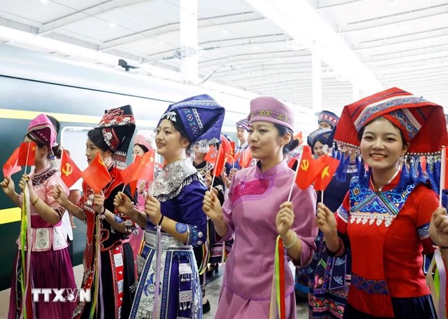 | Lễ tiễn Tổng Bí thư, Chủ tịch nước Tô Lâm cùng Phu nhân tại ga Nam Ninh Đông, Thành phố Nam Ninh. (Ảnh: Thống Nhất/TTXVN) |