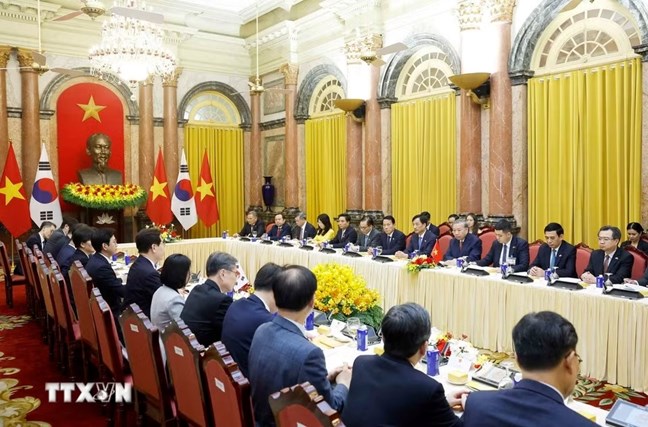 Tổng Bí thư, Chủ tịch nước Tô Lâm đánh giá cao sự tham gia đầu tư và đóng góp của các doanh nghiệp Hàn Quốc đối với quá trình phát triển kinh tế-xã hội của Việt Nam; hoan nghênh doanh nghiệp Hàn Quốc mở rộng quy mô đầu tư vào các lĩnh vực ưu tiên như phát triển cơ sở hạ tầng, đô thị thông minh, chất bán dẫn, Trung tâm dữ liệu AI quy mô lớn, hợp tác cảng biển thông minh và xây dựng cảng biển thế hệ mới.