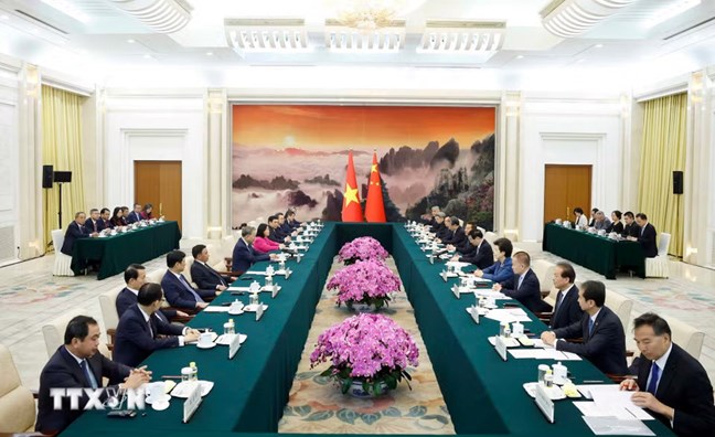 Trong không khí chân thành, hữu nghị và cởi mở, hai bên cùng bày tỏ vui mừng về những tiến triển quan trọng trong quan hệ hai Đảng, hai nước thời gian qua; cùng chia sẻ về tình hình mỗi đảng, mỗi nước, đặc biệt kể từ Đại hội XIV của Đảng Cộng sản Việt Nam và Trung Quốc tổ chức thành công kỳ họp Lưỡng hội năm 2026, thông qua Cương yếu Quy hoạch phát triển kinh tế - xã hội 5 năm lần thứ 15; cũng như thảo luận một số phương hướng lớn nhằm hiện thực hóa nhận thức chung cấp cao, thúc đẩy quan hệ song phương trong thời gian tới.
