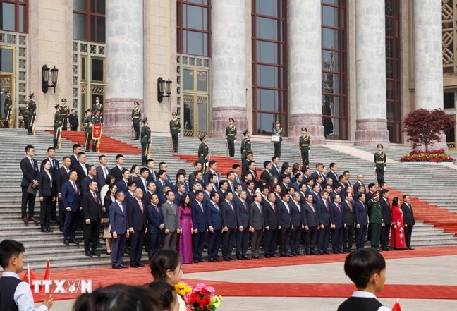 Sáng 15/4, Lễ đón chính thức Tổng Bí thư, Chủ tịch nước Tô Lâm và Phu nhân cùng Đoàn đại biểu cấp cao Việt Nam được tổ chức trọng thể tại Đại lễ đường Nhân dân theo nghi thức cao nhất dành cho nguyên thủ quốc gia. Tổng Bí thư, Chủ tịch Trung Quốc Tập Cận Bình và Phu nhân chủ trì Lễ đón.