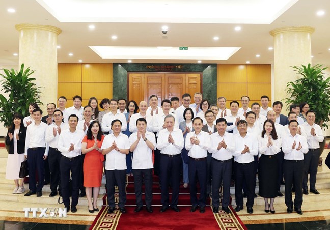Cùng dự cuộc làm việc có các đồng chí: Đại tướng Phan Văn Giang, Ủy viên Bộ Chính trị, Bộ trưởng Bộ Quốc phòng; Đại tướng Lương Tam Quang, Ủy viên Bộ Chính trị, Bộ trưởng Bộ Công an; Lê Hoài Trung, Bí thư Trung ương Đảng, Quyền Bộ trưởng Bộ Ngoại giao; Bùi Thanh Sơn, Ủy viên Trung ương Đảng, Phó Thủ tướng Chính phủ; Phạm Gia Túc, Ủy viên Trung ương Đảng, Chánh Văn phòng Trung ương Đảng; cùng đại diện lãnh đạo các đơn vị của Văn phòng Trung ương Đảng, Bộ Ngoại giao, Bộ Quốc phòng và Bộ Công an.