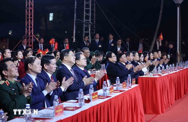 | Tổng Bí thư Tô Lâm, các đồng chí lãnh đạo, nguyên lãnh đạo Đảng, Nhà nước dự Chương trình kỷ niệm 85 năm Ngày Bác Hồ về nước trực tiếp lãnh đạo Cách mạng Việt Nam (28/1/1941-28/1/2026) “Hai tay xây dựng một sơn hà”. Ảnh: Thống Nhất /TTXVN, Báo QĐND, Báo Nghệ An |