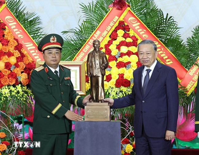 | Tổng Bí thư Tô Lâm tặng bức tượng Chủ tịch Hồ Chí Minh cho Tổng cục Công nghiệp Quốc phòng |