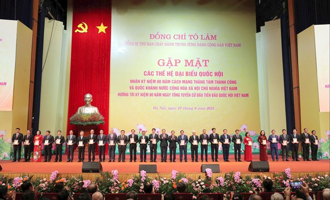 Phát biểu tại cuộc gặp mặt, thay mặt lãnh đạo Đảng và Nhà nước, Tổng Bí thư Tô Lâm trân trọng gửi tới các đồng chí lão thành cách mạng, các vị tiền bối tiêu biểu, các vị đại biểu Quốc hội qua các thời kỳ lời thăm hỏi ân cần, lời tri ân sâu sắc nhất.