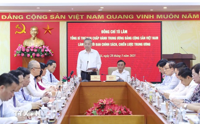 Phát biểu kết luận buổi làm việc, Tổng Bí thư Tô Lâm cơ bản nhất trí với nội dung báo cáo của Ban Chính sách, chiến lược Trung ương đã nêu ra; đánh giá cao những ý kiến đóng góp thẳng thắn, tâm huyết, hữu ích của các đại biểu dự họp.