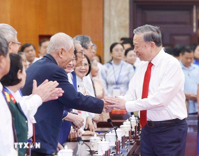 | Tổng Bí thư Tô Lâm đến thăm, chúc Tết nhà nghiên cứu Nguyễn Đình Tư, 106 tuổi người có nhiều công trình nghiên cứu về sử học, văn hoá có giá trị. Ảnh: Thống Nhất/TTXVN |