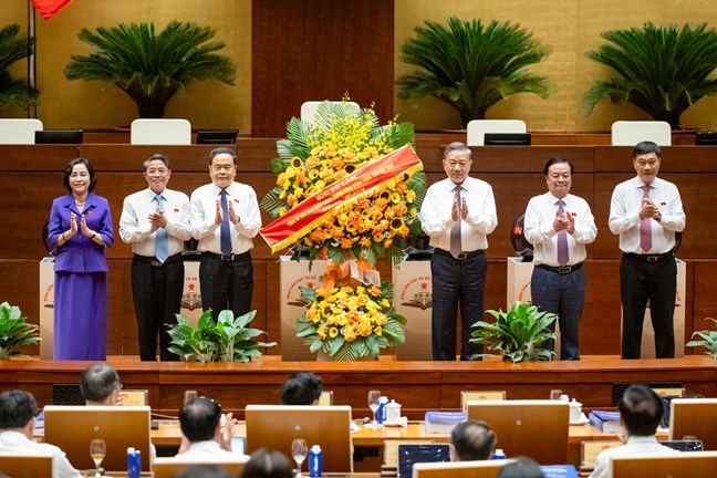 Thay mặt Lãnh đạo Đảng, Nhà nước, Tổng Bí thư nhiệt liệt biểu dương Đảng ủy và lãnh đạo Quốc hội đã chỉ đạo triển khai phong trào “Bình dân học vụ số - Quốc hội số” một cách bài bản, khoa học, hiệu quả và sát với nhu cầu thực tiễn của từng đơn vị. Đảng ủy Quốc hội đã ban hành Kế hoạch thực hiện Nghị quyết 57, đặt mục tiêu nâng cao nhận thức về chuyển đổi số cho toàn thể đại biểu Quốc hội, cán bộ, đảng viên, công chức, viên chức; hình thành tư duy số và văn hóa ứng dụng công nghệ trong công việc; đồng hành với cử tri trong tiếp cận tri thức số. Quốc hội cũng chú trọng phổ cập các kỹ năng số thiết yếu, khai thác hiệu quả các nền tảng số, công nghệ số và trí tuệ nhân tạo, hướng tới hình thành “Quốc hội số” trong tương lai.