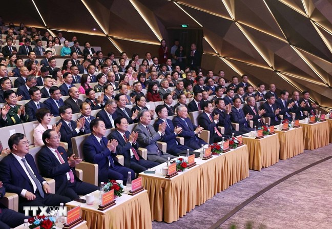 | Tổng Bí thư Tô Lâm và các đại biểu tham dự buổi lễ. Ảnh: Thống Nhất/TTXVN |