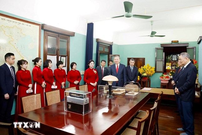 | Tổng Bí thư Tô Lâm tại Khu di tích Chủ tịch Hồ Chí Minh trong Phủ Chủ tịch. Ảnh: Thống Nhất/TTXVN |