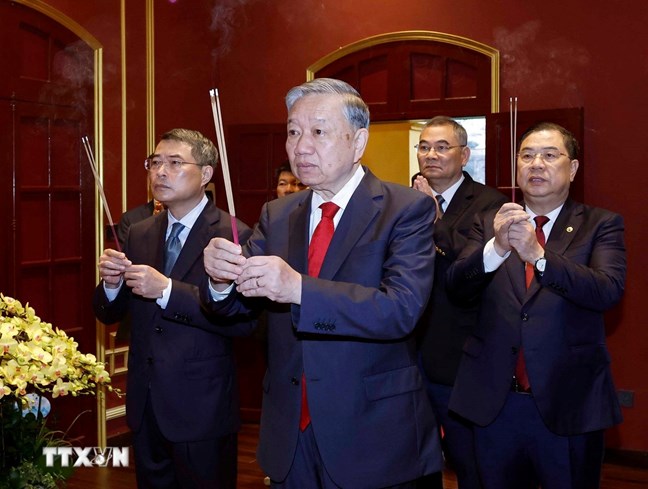 | Tổng Bí thư Tô Lâm dâng hương tưởng niệm Bác Hồ tại Nhà 67, Khu Di tích Chủ tịch Hồ Chí Minh tại Phủ Chủ tịch. (Ảnh: Thống Nhất/TTXVN) |