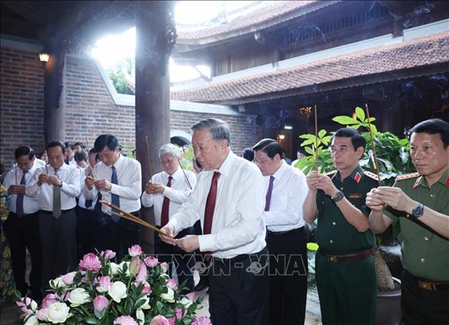 | Tổng Bí thư Tô Lâm dâng hương tại Khu di tích Quốc gia đặc biệt Kim Liên. Ảnh: Thống Nhất/TTXVN |