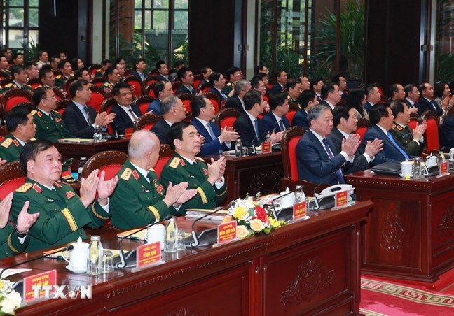 | Tổng Bí thư Tô Lâm và các đại biểu. (Ảnh: Thống Nhất/TTXVN) |