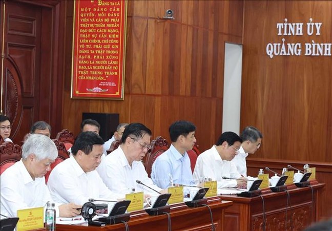Cùng tham dự buổi làm việc có các đồng chí Ủy viên Bộ Chính trị, Bí thư Trung ương Đảng: Trưởng ban Tổ chức Trung ương Lê Minh Hưng, Trưởng ban Nội chính Trung ương Phan Đình Trạc, Chủ nhiệm Ủy ban Kiểm tra Trung ương Nguyễn Duy Ngọc, Trưởng ban Tuyên giáo và Dân vận Trung ương Nguyễn Trọng Nghĩa, Chủ tịch Ủy ban Trung ương Mặt trận Tổ quốc Việt Nam Đỗ Văn Chiến; các đồng chí Ủy viên Bộ Chính trị: Nguyễn Xuân Thắng, Giám đốc Học viện Chính trị Quốc gia Hồ Chí Minh, Chủ tịch Hội đồng Lý luận Trung ương; Đại tướng Phan Văn Giang, Bộ trưởng Bộ Quốc phòng; Đại tướng Lương Tam Quang, Bộ trưởng Bộ Công an. Các đồng chí: Lê Hoài Trung, Bí thư Trung ương Đảng, Chánh Văn phòng Trung ương Đảng; Trần Hồng Hà, Ủy viên Trung ương Đảng, Phó Thủ tướng Chính phủ; các đồng chí Ủy viên Trung ương Đảng, lãnh đạo bộ, ban, ngành, cơ quan Trung ương, lãnh đạo Quân khu 4, lãnh đạo các tỉnh Quảng Bình, Quảng Trị tham dự buổi làm việc.