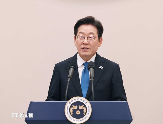 | Tổng thống Hàn Quốc Lee Jae Myung phát biểu (Ảnh: Thống Nhất/TTXVN) |