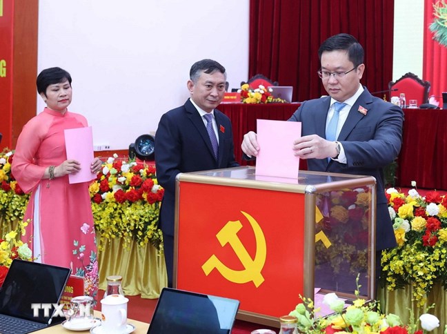 | Các đại biểu bỏ phiếu bầu Ban Chấp hành Đảng bộ Văn phòng Trung ương Đảng nhiệm kỳ 2025-2030. (Ảnh: Thống Nhất/TTXVN) |