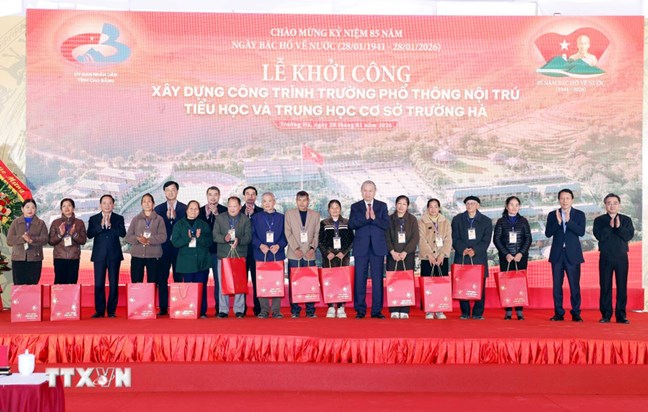 Nhân dịp năm mới 2026 và chuẩn bị đón Tết cổ truyền của dân tộc, Tổng Bí thư gửi tới các lão thành cách mạng, cùng toàn thể nhân dân các dân tộc xã Trường Hà lời thăm hỏi ân cần và lời chúc mừng năm mới tốt đẹp nhất; chúc mỗi gia đình, mỗi bản làng một mùa xuân ấm no, hạnh phúc, năm mới giành được nhiều thắng lợi mới; chúc các thầy giáo, cô giáo luôn giữ vững ngọn lửa tâm huyết, là những người truyền lửa ấm áp nhất cho các thế hệ học sinh nơi biên cương Tổ quốc; chúc các cháu học sinh - những mầm non tương lai của đất nước - đón một cái Tết vui tươi, an toàn. Bước sang năm mới với quyết tâm mới, các cháu học sinh học tập thật giỏi, rèn luyện thật tốt để sớm trở thành những chủ nhân tương lai, xứng đáng với sự quan tâm, kỳ vọng của Đảng, Nhà nước và nhân dân.