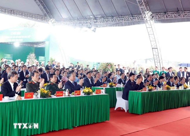 | Tổng Bí thư Tô Lâm và các đại biểu tham gia trồng cây tại Lễ phát động “Tết trồng cây đời đời nhớ ơn Bác Hồ” Xuân Bính Ngọ 2026. Ảnh: Thống Nhất/TTXVN |