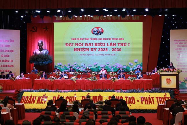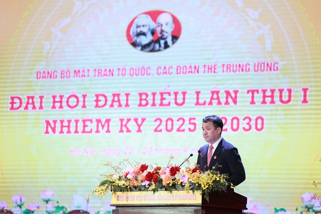 Phát biểu khai mạc Đại hội, đồng chí Đỗ Văn Chiến, Ủy viên Bộ Chính trị, Bí thư Trung ương Đảng, Bí thư Đảng ủy MTTQ, các đoàn thể Trung ương, Chủ tịch UBTW MTTQ Việt Nam nêu rõ, trong không khí phấn khởi và tự hào của toàn Đảng, toàn dân, toàn quân, vừa kỷ niệm 80 năm Cách mạng tháng Tám thành công và Quốc khách 2/9; cả nước đang ra sức thi đua, phấn đấu hoàn thành thắng lợi Nghị quyết Đại hội toàn quốc lần thứ XIII của Đảng và hướng tới Đại hội đại biểu toàn quốc lần thứ XIV. Thực hiện Chỉ thị 45-CT/TW của Bộ Chính trị, đến ngày 25/8/2025, 25 đảng bộ, chi bộ cơ sở và cấp trên cơ sở của Đảng bộ Mặt trận Tổ quốc, các đoàn thể Trung ương đã hoàn thành đại hội, đảm bảo tiến độ, chất lượng theo chỉ thị của Bộ Chính trị. Được sự đồng ý của Bộ Chính trị, Ban Bí thư, hôm nay, Đảng bộ Mặt trận Tổ quốc, các đoàn thể Trung ương long trọng tổ chức Đại hội đại biểu lần thứ I, nhiệm kỳ 2025 - 2030. Đây là đại hội có ý nghĩa chính trị rất quan trọng, không chỉ đặt nền móng cho sự lãnh đạo của Đảng bộ nhiệm kỳ này mà còn định hướng lãnh đạo của Đảng bộ trong những nhiệm kỳ tiếp theo.