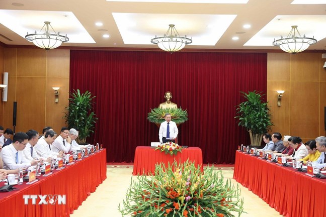 | Tổng Bí thư Tô Lâm và các đại biểu. Ảnh: Thống Nhất /TTXVN |