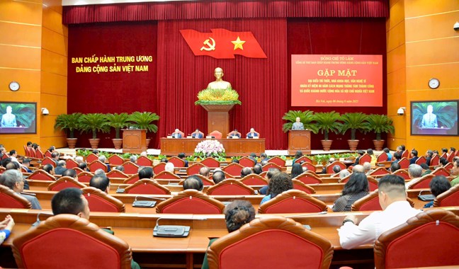 Thay mặt Đảng, Nhà nước và nhân dân, Tổng Bí thư biểu dương, ghi nhận, tri ân và hy vọng vào những đóng góp to lớn của đội ngũ trí thức, nhà khoa học, văn nghệ sỹ trong suốt chiều dài lịch sử của dân tộc, đặc biệt kể từ khi có Đảng, có Bác Hồ lãnh đạo đất nước ta, dân tộc ta.