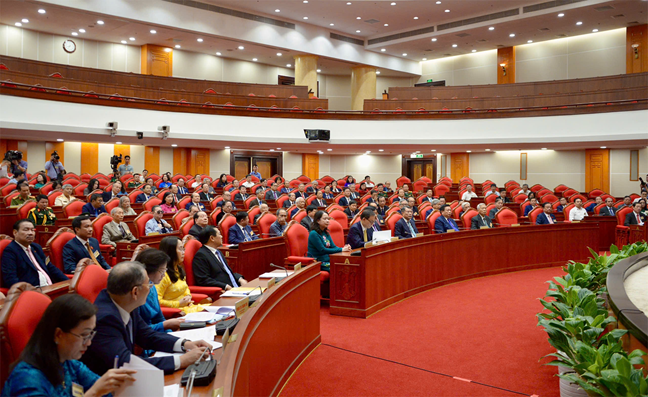 Tổng Bí thư Tô Lâm dự và chủ trì Hội nghị. Các đồng chí: Ủy viên Bộ Chính trị, Thủ tướng Chính phủ Phạm Minh Chính; Ủy viên Bộ Chính trị, Thường trực Ban Bí thư Trần Cẩm Tú; Ủy viên Bộ Chính trị, Bí thư Trung ương Đảng, Trưởng ban Tuyên giáo và Dân vận Trung ương Nguyễn Trọng Nghĩa; Ủy viên Bộ Chính trị, Bí thư Trung ương Đảng, Chủ tịch Ủy ban Trung ương Mặt trận Tổ quốc Việt Nam Đỗ Văn Chiến dự và cùng chủ trì Hội nghị.