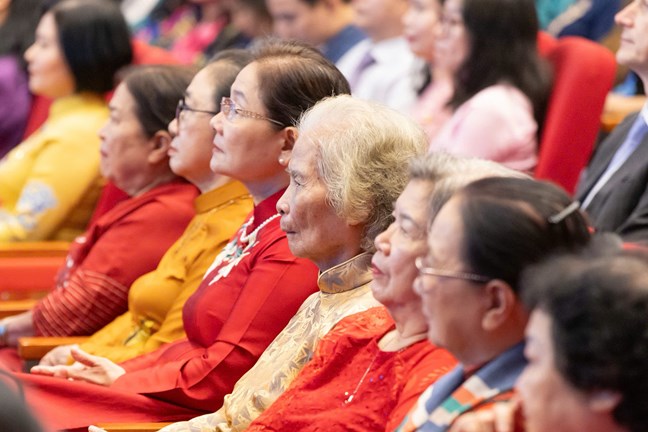 Đọc Diễn văn tại Lễ kỷ niệm, Ủy viên Trung ương Đảng, Chủ tịch Hội Liên hiệp Phụ nữ Việt Nam Nguyễn Thị Tuyến nhấn mạnh, ngay từ những ngày đầu thành lập, Đảng ta đã xác định phụ nữ là lực lượng góp phần quan trọng vào sự nghiệp cách mạng, xây dựng Đảng và bảo vệ Tổ quốc. Nghị quyết Hội nghị Trung ương Đảng lần thứ Nhất (tháng 10/1930) đã đánh dấu quá trình hình thành và ra đời tổ chức Hội (đầu tiên) của phong trào phụ nữ cả nước. Từ đó, các tổ chức phụ nữ tiền thân như: Đoàn Phụ nữ Cứu quốc, Hội Phụ nữ Giải phóng, Hội Phụ nữ Dân chủ, Hội Phụ nữ Phản đế… đã mở đầu cho sự hình thành và phát triển của Hội Liên hiệp Phụ nữ Việt Nam.