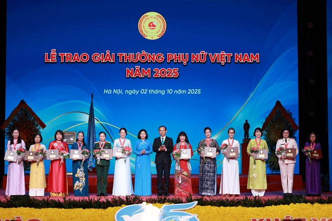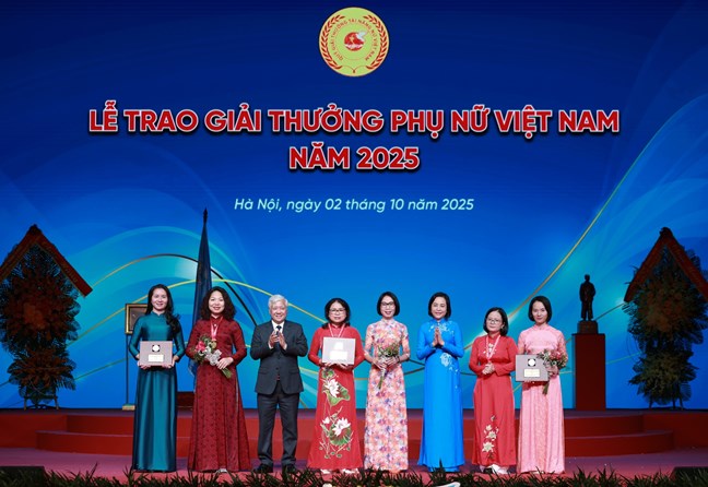Nhân dịp này, đồng chí Đỗ Văn Chiến, Ủy viên Bộ Chính trị, Bí thư Trung ương Đảng, Chủ tịch Ủy ban Trung ương Mặt trận Tổ quốc Việt Nam và đồng chí Nguyễn Thị Thanh, Ủy viên Trung ương Đảng, Phó Chủ tịch Quốc hội đã trao Giải thưởng Phụ nữ Việt Nam năm 2025 cho 3 tập thể. Đồng chí Nguyễn Văn Nên, Ủy viên Bộ Chính trị, Thường trực Tiểu ban Văn kiện Đại hội XIV của Đảng và đồng chí Nguyễn Thị Tuyến, Ủy viên Trung ương Đảng, Chủ tịch Hội Liên hiệp Phụ nữ Việt Nam đã trao Giải thưởng Phụ nữ Việt Nam năm 2025 cho 12 cá nhân tiêu biểu.