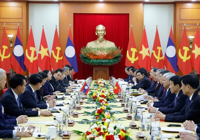 | Cuộc hội đàm giữa Tổng Bí thư Tô Lâm và đoàn cấp cao Việt Nam với Tổng Bí thư, Chủ tịch nước Lào Thongloun Sisoulith và đoàn cấp cao Lào. (Ảnh: Thống Nhất/TTXVN) |