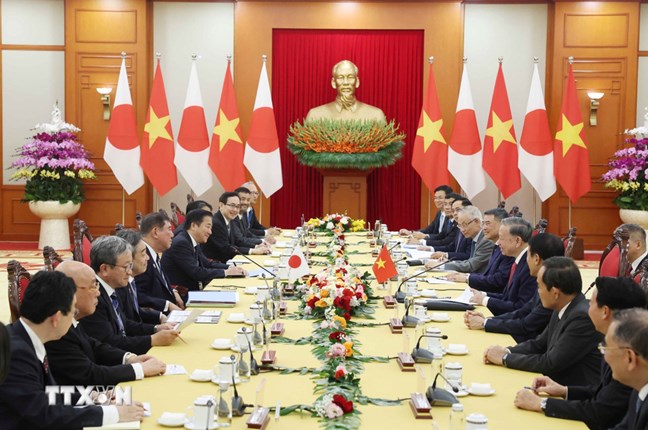 | Tổng Bí thư Tô Lâm hội kiến Chủ tịch Đảng Dân chủ Tự do, Thủ tướng Nhật Bản Ishiba Shigeru - Ảnh: TTXVN |