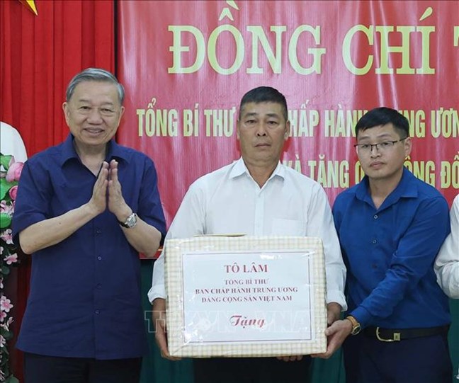 | Tổng Bí Thư Tô Lâm tặng quà cho xã Si Pa Phìn, tỉnh Điện Biên. Ảnh: Thống Nhất/TTXVN |