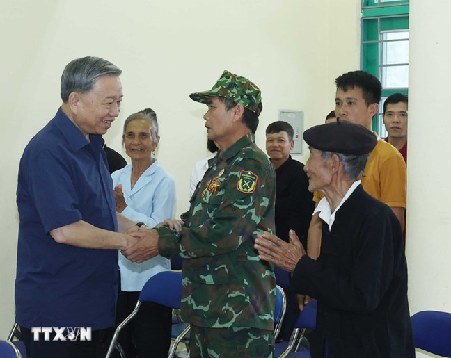 | Tổng Bí Thư Tô Lâm đến thăm và tặng quà cho cộng đồng bản Tân Lập, xã Si Pa Phìn, tỉnh Điện Biên. Ảnh: Thống Nhất/TTXVN |