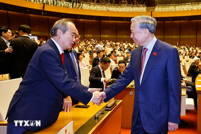 | Tổng Bí thư Tô Lâm với các đồng chí nguyên lãnh đạo Đảng, Nhà nước dự khai mạc Kỳ họp thứ Nhất, Quốc hội khóa XVI. Ảnh: Thống Nhất/TTXVN |