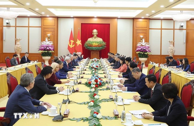 Chủ tịch Duma Quốc gia Quốc hội Nga Vyacheslav Volodin đã thông tin với Tổng Bí thư Tô Lâm những kết quả chính của Ủy ban hợp tác liên Nghị viện giữa Quốc hội Việt Nam và Duma Quốc gia Quốc hội Nga; chia sẻ những nhận định, đánh giá của Duma Quốc gia Quốc hội Nga về triển vọng hợp tác song phương và sẽ nỗ lực tạo khuôn khổ pháp lý thuận lợi để thúc đẩy thực chất và có hiệu quả hơn nữa quan hệ Đối tác Chiến lược Toàn diện Việt Nam-Nga trên một số lĩnh vực như kinh tế-thương mại, đầu tư, năng lượng-dầu khí, điện hạt nhân, khoa học - công nghệ, giáo dục đào tạo...
