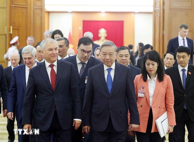 Tổng Bí thư Tô Lâm và Chủ tịch Duma Quốc gia Quốc hội Nga Vyacheslav Volodin khẳng định truyền thống hợp tác tốt đẹp trong lĩnh vực giáo dục-đào tạo, khoa học-công nghệ-kỹ thuật và y tế; khẳng định quyết tâm đưa hợp tác trong các lĩnh vực này lên tầm cao mới với những dự án hợp tác chung nhằm phát huy tối đa tiềm năng và yêu cầu phát triển của hai nước./.