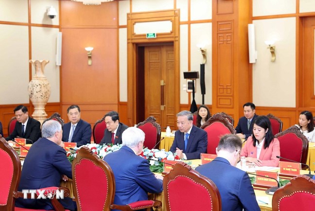 Tổng Bí thư Tô Lâm nhấn mạnh, trong bối cảnh tình hình thế giới và khu vực có nhiều diễn biến nhanh chóng, Việt Nam đặt quyết tâm tập trung mọi nguồn lực để phát triển đất nước, đưa dân tộc Việt Nam vào kỷ nguyên giàu mạnh, thịnh vượng và mong muốn các bạn bè, đối tác tin cậy của Việt Nam sẽ cùng đồng hành trên con đường này.