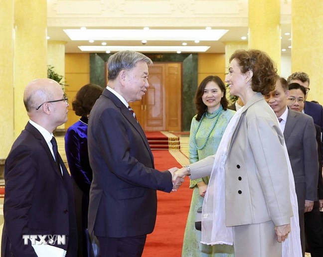 Về phần mình, Tổng Giám đốc UNESCO Audrey Azoulay bày tỏ niềm vui và cảm kích khi được gặp lại Tổng Bí thư Tô Lâm tại Việt Nam và đề cao hợp tác với Việt Nam gần 50 năm qua, ghi nhận Việt Nam là một trong những thành viên tích cực nhất tại UNESCO và khẳng định “chưa bao giờ quan hệ hợp tác Việt Nam - UNESCO tốt đẹp như hiện nay”.