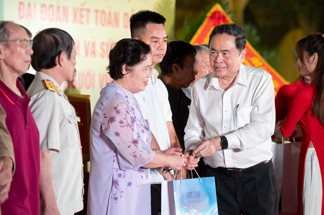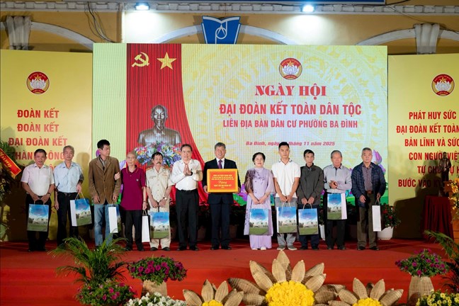 Chủ tịch Quốc hội Trần Thanh Mẫn, Thường trực Ban Bí thư Trần Cẩm Tú đã trao quà lưu niệm tặng Ban tổ chức ngày hội và 10 gia đình chính sách tiêu biểu trên địa bàn phường Ba Đình.