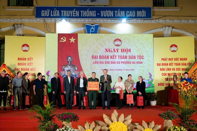 Tại Ngày hội, Tổng Bí thư Tô Lâm đã trao bức tượng Bác Hồ về thăm quê tặngĐảngbộ, chính quyền và Nhân dân phường Ba Đình; trao quà tặng tập thể đơn vị tổ chức Ngày hội và 10 hộ gia đình chính sách trên địa bàn phường Ba Đình.