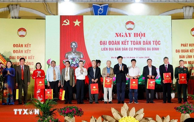 | Tổng Bí thư Tô Lâm trao quà tặng tập thể đơn vị tổ chức Ngày hội và 10 hộ gia đình chính sách trên địa bàn phường Ba Đình |